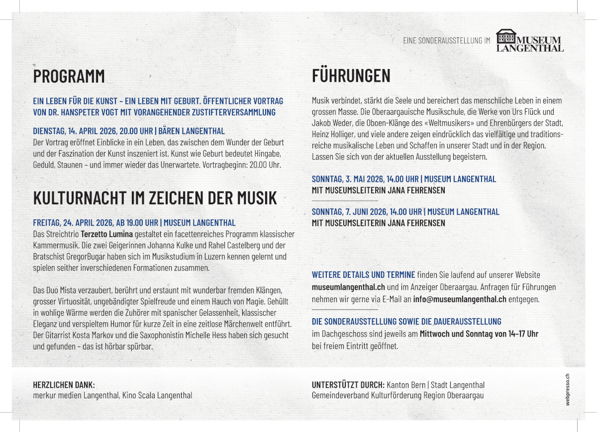 Sonntag, 3. Mai 2026| 14:00 Uhr | Museum Langenthal